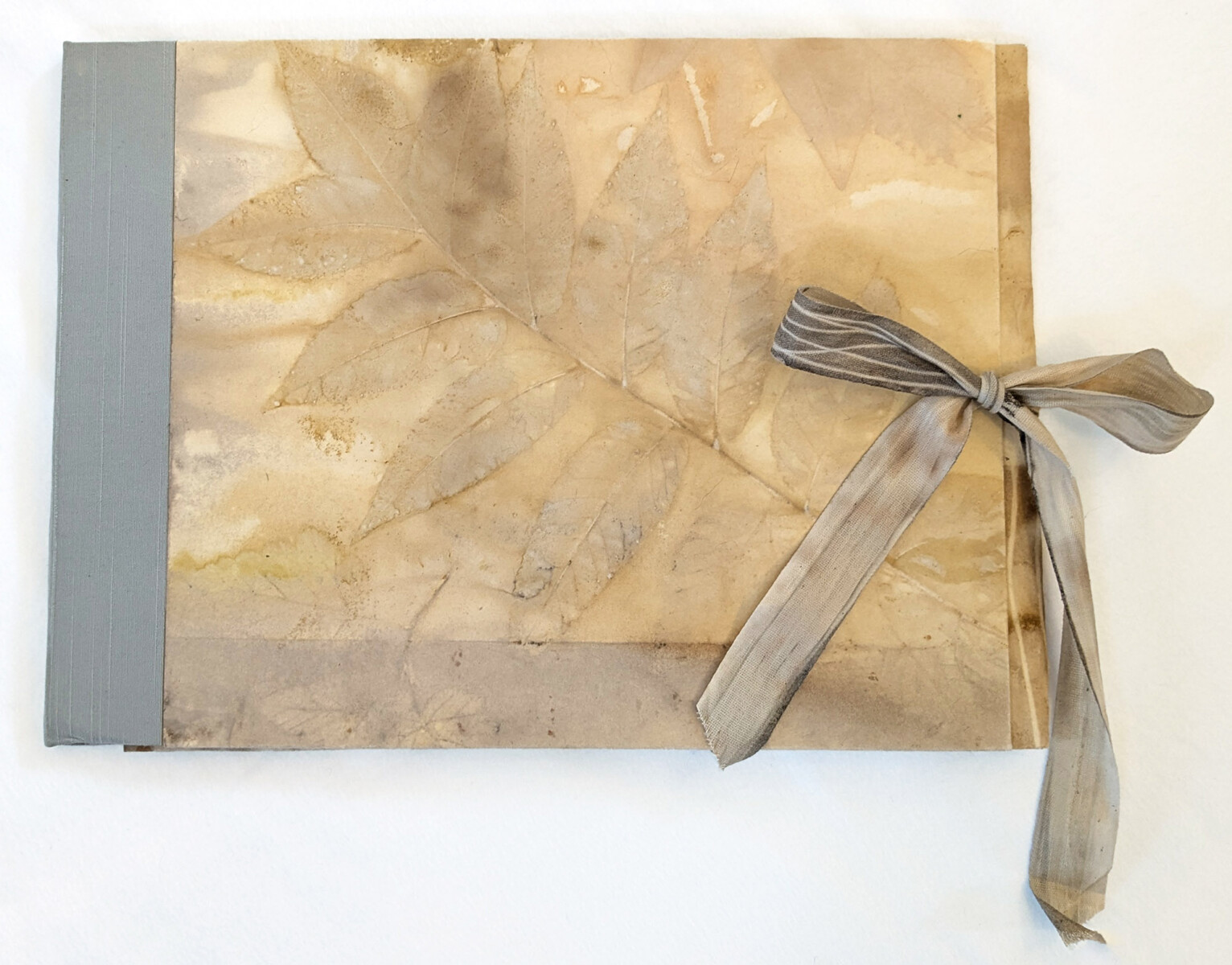 This workshop will begin by using the contact method (also called eco-printing or botanical printing) of transferring natural plant pigment material to paper appropriate for book binding. Students will prepare contact-printed papers dyes with real leaves to create a custom portfolio to hold precious papers.