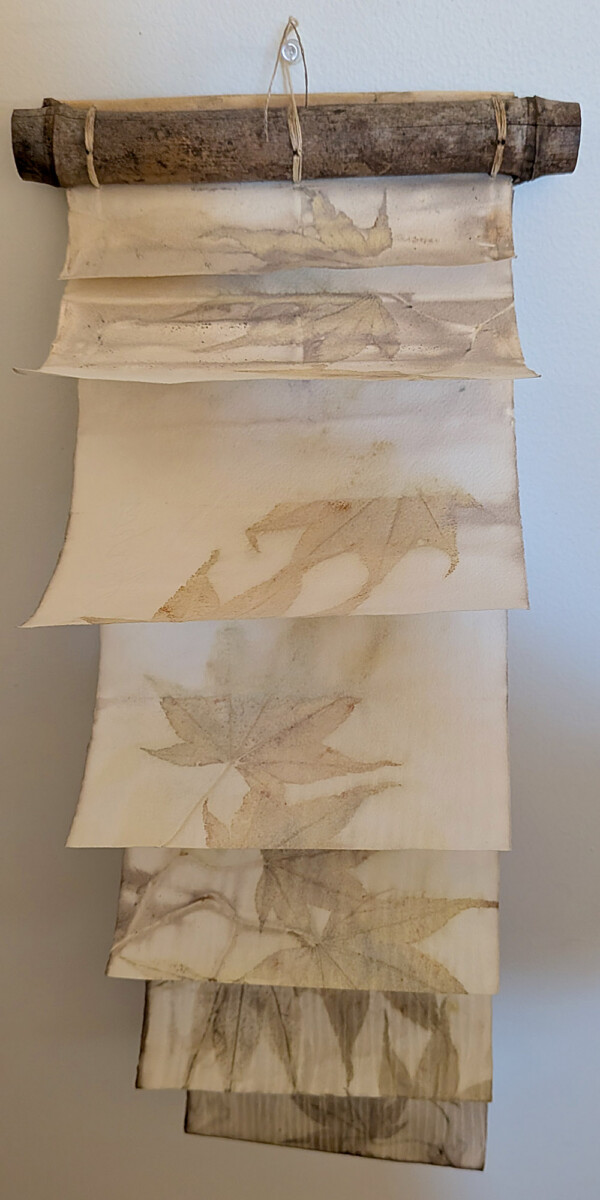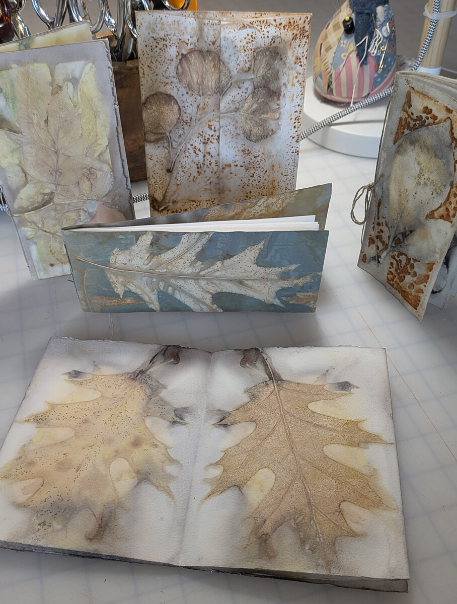 • Dyeing—using natural leaves to print on paper, augmenting the process with additional dye blankets.