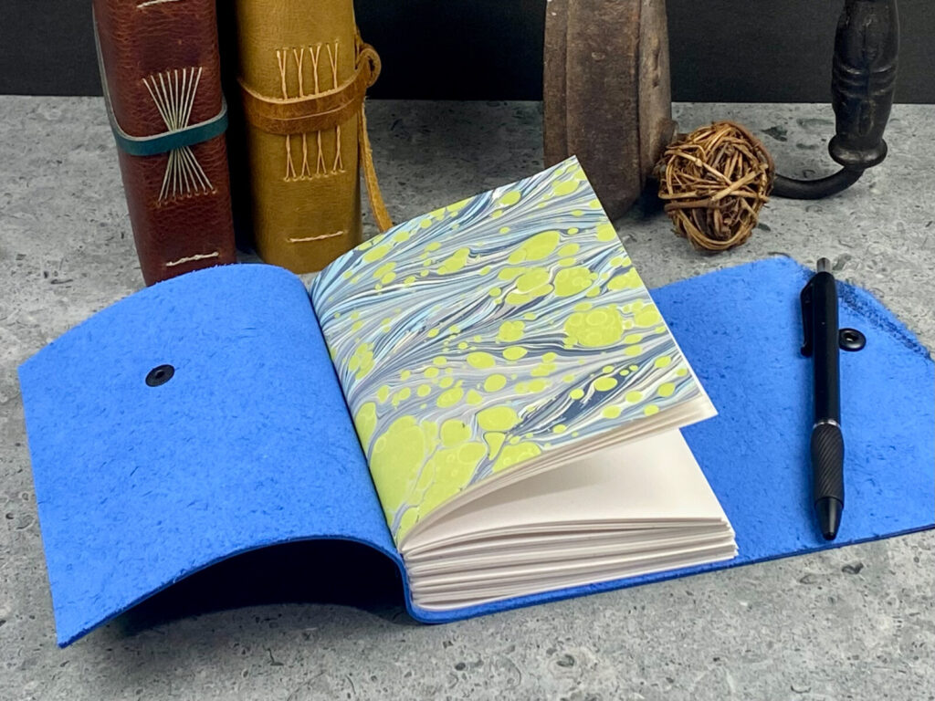 We will explore the unique properties of both leather and paper, discovering how they work together. Students will learn how to fold and trim signatures with precision, and how to add end sheets. We will cover essential stitching patterns, and students will learn how to create their own templates for more intricate designs. Students will also have the opportunity to try out a variety of closures to personalize their journals, including leather straps, snaps, and buttons.