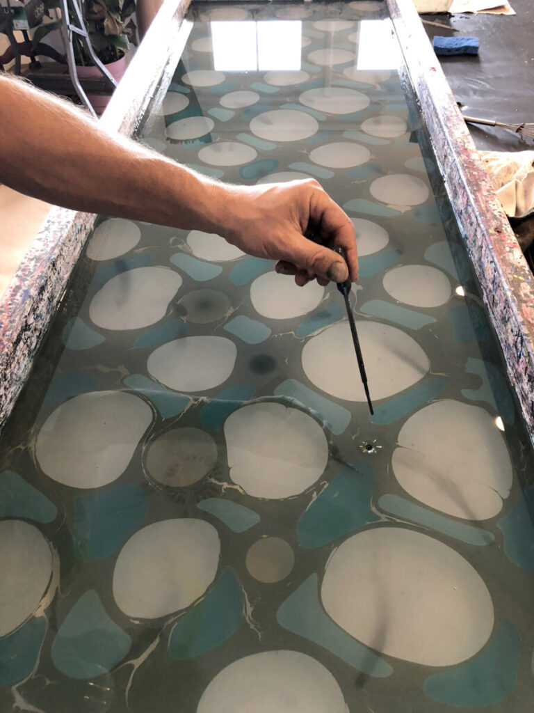 In this introductory class, students will gain a basic understanding of the history, techniques, tools, and styles of Western marbling. We will talk about the color wheel and color theory to guide students’ creativity. Pietro will demonstrate how to execute the most classic patterns and how to create simple harmonic color combinations.