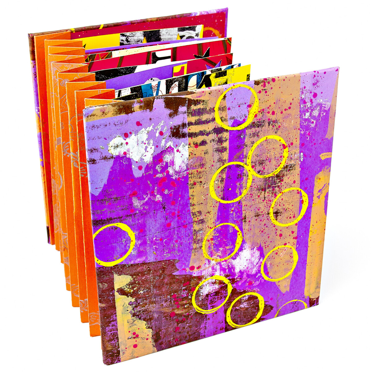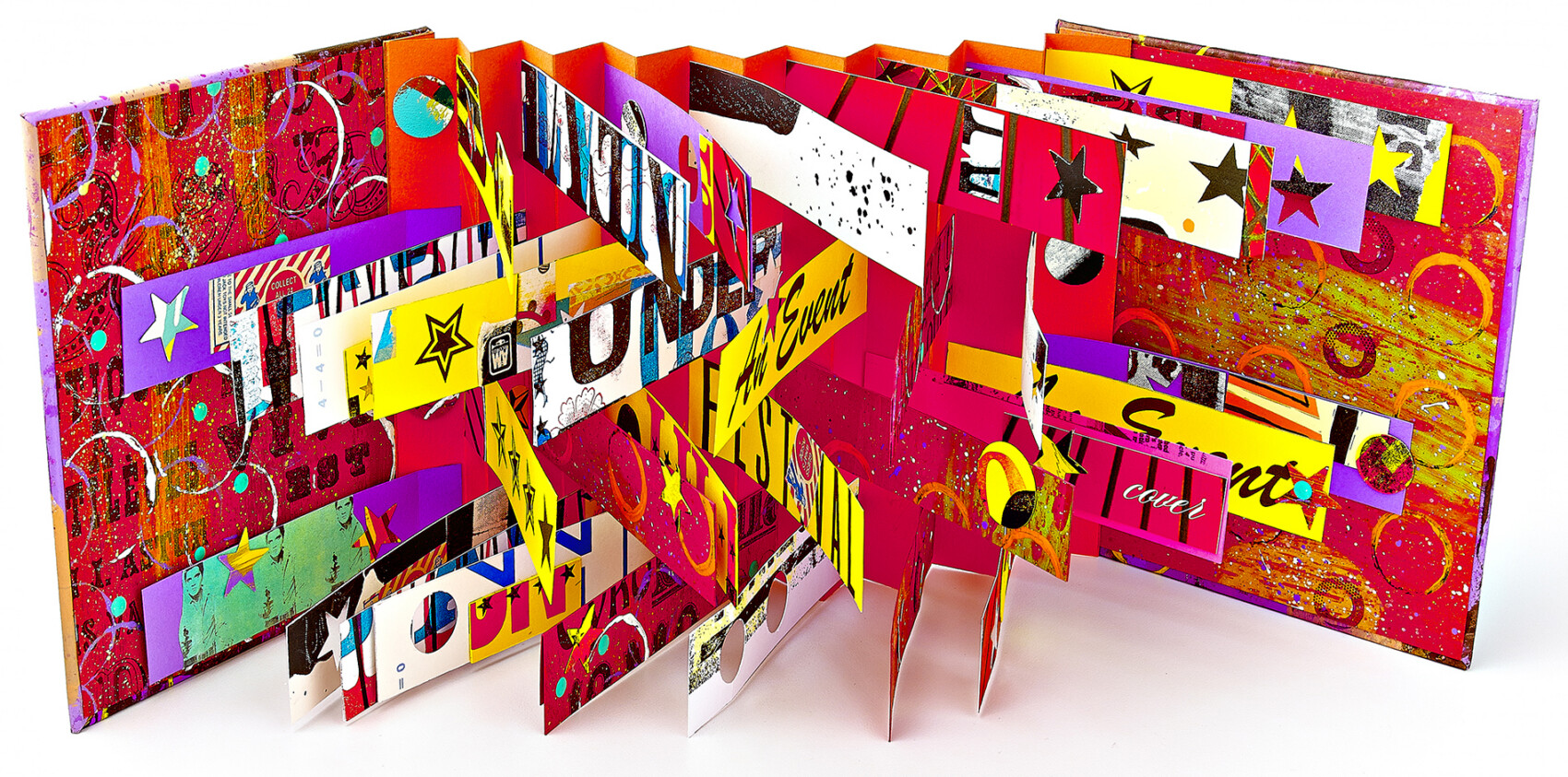 Gather found type, numerals, tickets and random images! This book is an easy and fun flag book structure mounted between two hard covers. Paint the covers or cover with decorative paper. Use found typography to create a paper festival and add a bit of collage, stars, and miscellaneous ephemera and create a dynamic structure full of type and image.