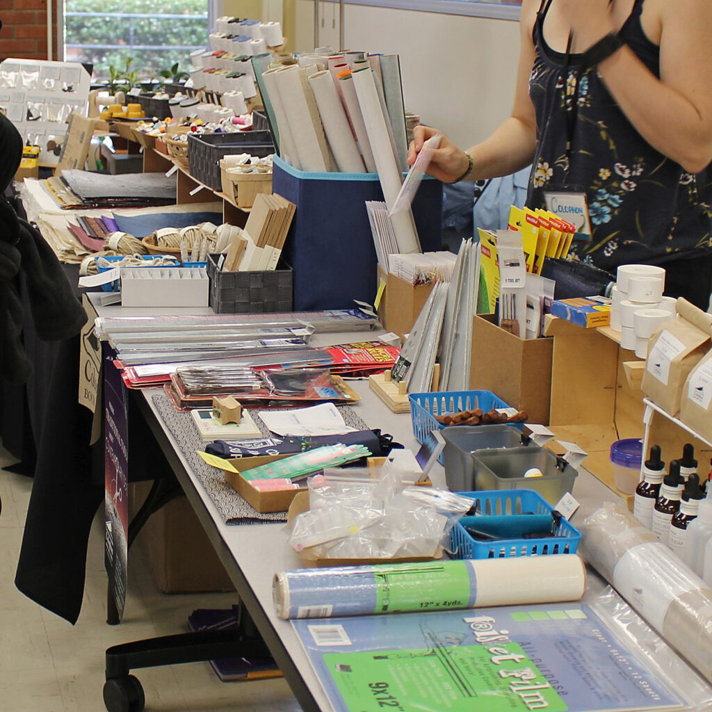Come browse from the professionals! This year we’re curating a Trade Show that highlights specialty, handmade, and niche vendors to complement our on-site supplier, who will be offering basic book arts materials. The Trade Show, which runs Wednesday through Saturday, will be located in the same building as many of the workshops. You’ll be able to discover treasures you didn’t know you needed, find that elusive tool you’ve been looking for, or supplement your stash with something special.